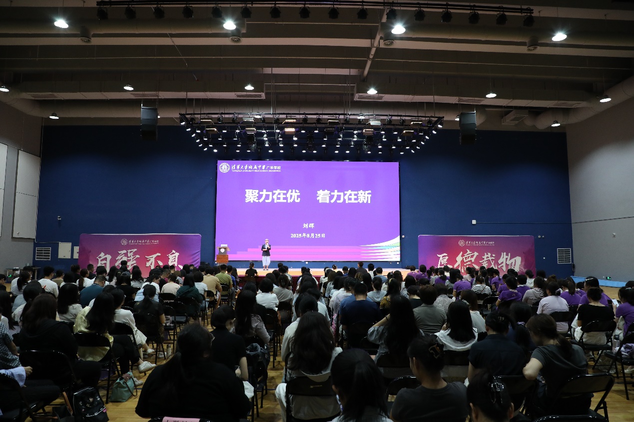 8月25 日,清华附中广华学校召开 2025-2026 学年第一学期全体教职工大会。广华学校、广华幼儿园280余名教职工齐聚一堂,共同擘画新学期教育蓝图。会议由党总支书记兼执行校长刘辉主持,为新学期工作拉开序幕。