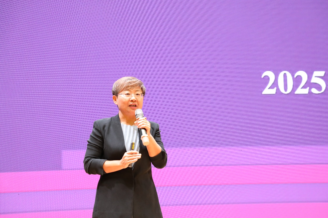 大会核心环节,刘辉校长以《聚力在优 着力在新》为题作报告。她首先传达清华附中教育集团暑期工作会精神,重温《教育强国建设规划纲要》,强调广华作为“朝阳东部清华附中”,需以清华大学附属中学教育集团的理念为指导,以“不等领先,争做基础教育改革先行者”为指引,在教育教学、教师成长与理念传播上主动作为,拒绝 “躺赢”。