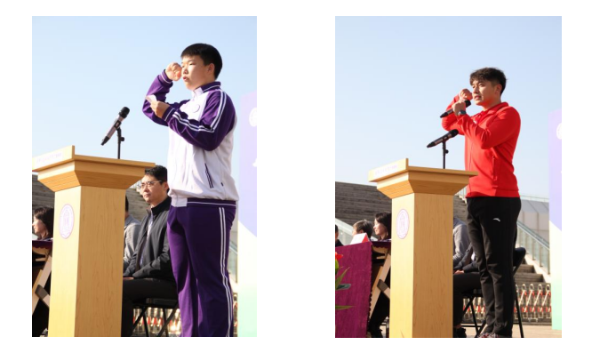 高二4班徐彦宁同学、总裁判长渠志远老师,分别代表全体运动员、裁判员发言宣誓。