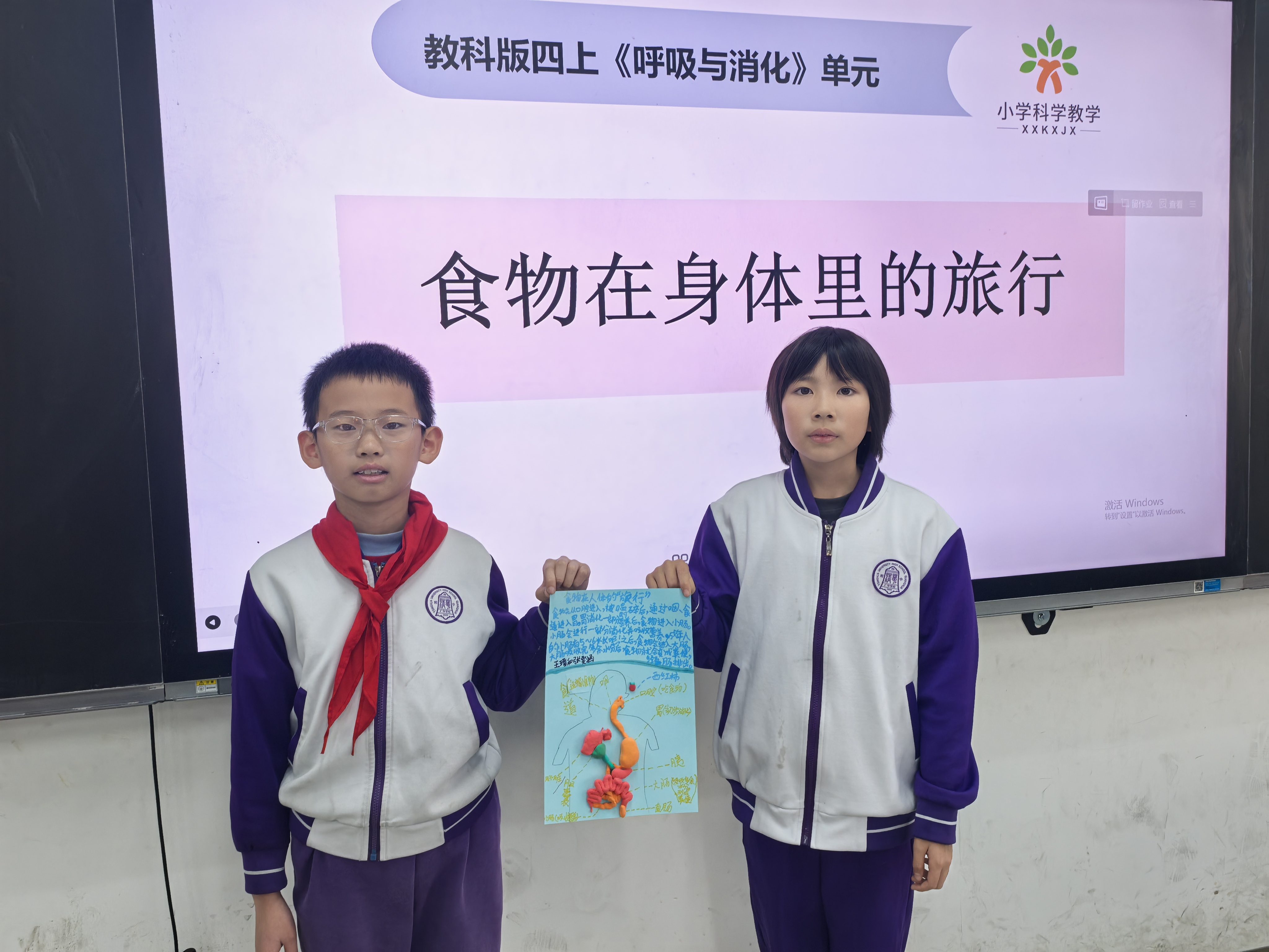 四年级聚焦“呼吸与消化的奥秘”,同学们通过模型制作与原理解说的方式深化学习。大家运用多样材料呈现人体相关器官结构与关联,并用简洁明了的文字阐述生理过程,在动手实践与语言表达的结合中,轻松解锁人体奥秘。