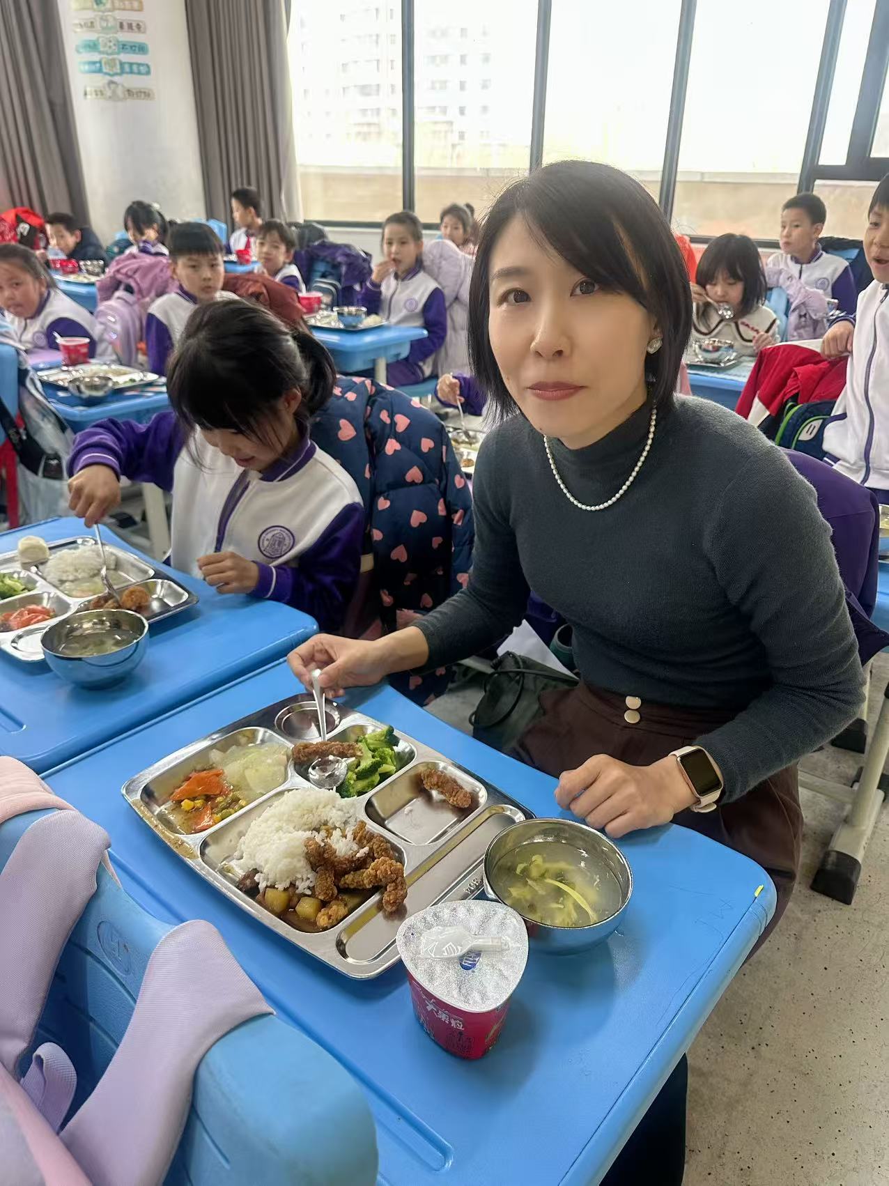 正午时分,膳食监督委员会的委员们走进班级,走进食堂,与同学们围坐在一起,共进午餐、亲切交流,开展“沉浸式”陪餐活动,亲身感受学生们的就餐日常。